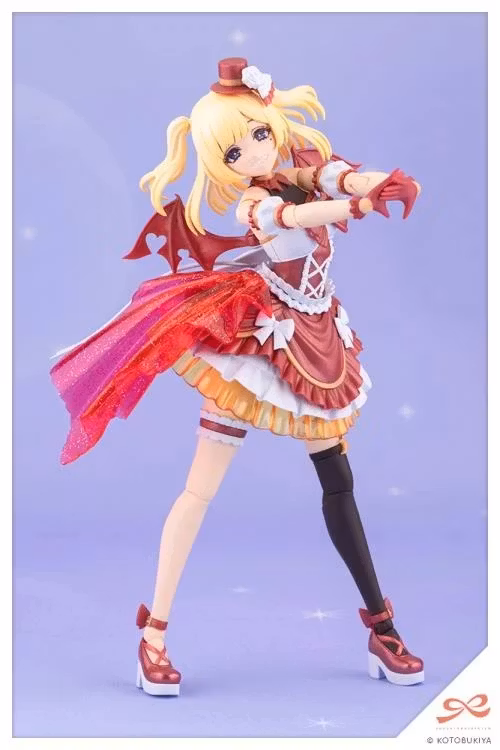 The outfit features a vivid color scheme centered around a velvet-like metallic red, giving it a striking, glamorous appearance. The cloth at her waist is molded in glittery clear red, giving it a sparkling, eye-catching finish. The model uses Skin Color A, which is designed with customization in mind, so parts can be easily mixed and matched with other characters.