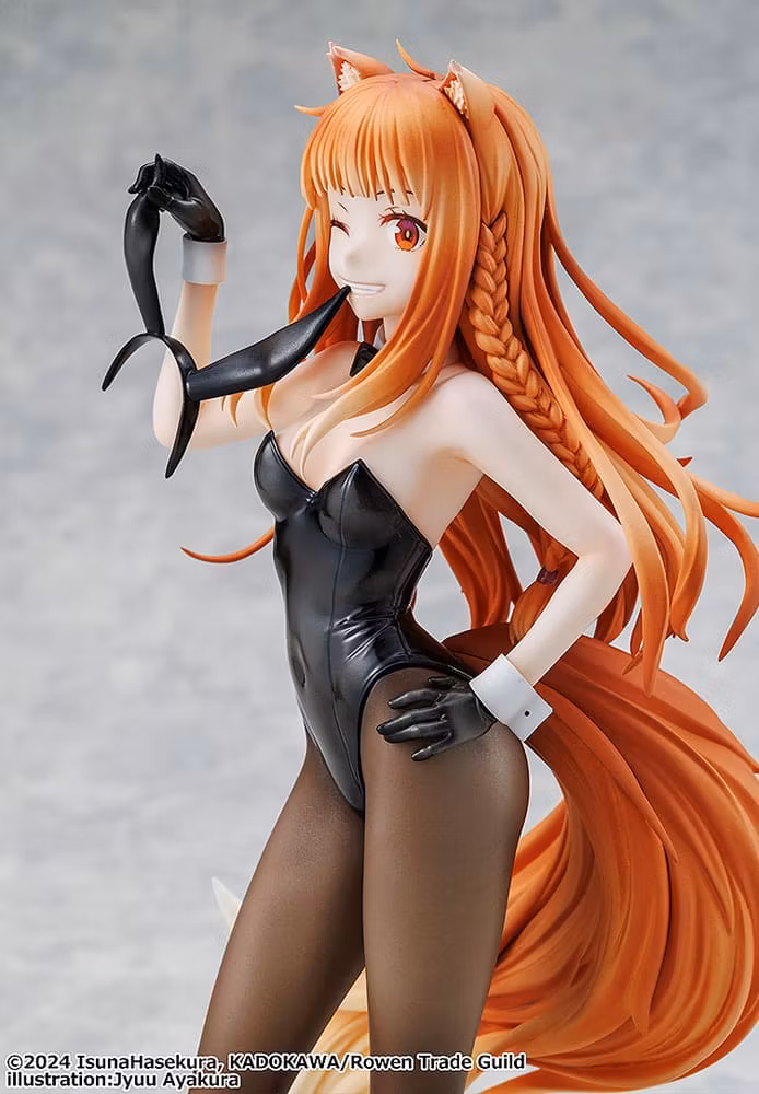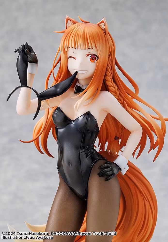Figuren visar Holo klädd i en djärv kanindräkt baserad på en nyritad illustration av illustratören Jyuu Ayakura från den ursprungliga ljusromanserien.