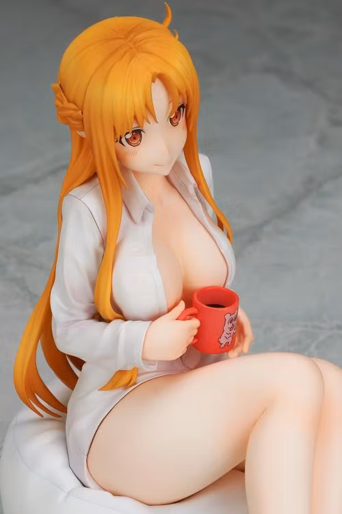 Asuna har fångats i figurform när hon njuter av sin paus i verkligheten efter att ha loggat ut från den virtuella världen. Genom den öppna skjortan kan du få en glimt av hennes lockande bara hud.