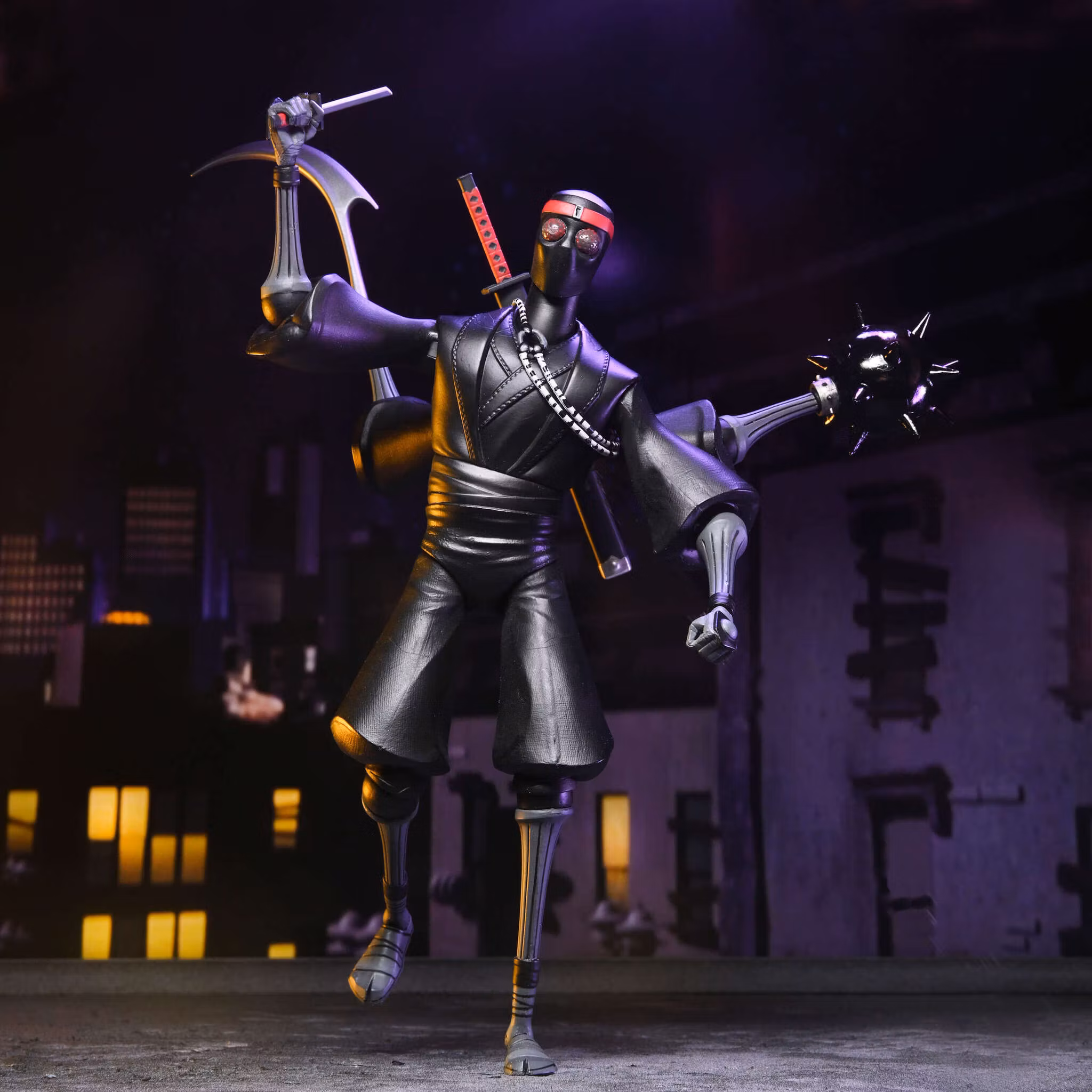 Booyakasha! NECA is proud to present all-new Ultimate action figures from Nickelodeon's hit 2012 Teenage Mutant Ninja Turtles animated series! Known for its dynamic animation style and character-driven storytelling, the acclaimed show reimagined the heroes in a half shell for a new generation. These 7-inch scale Footbots feature incredible painted details to replicate their animated appearance and an array of episode-specific accessories: interchangeable heads and hands, katana, tanto, kusarigama, katar, mace, and robotic weapon attachments. The figures come in collector-friendly packaging with illustrations by TMNT artist Ciro Nieli.