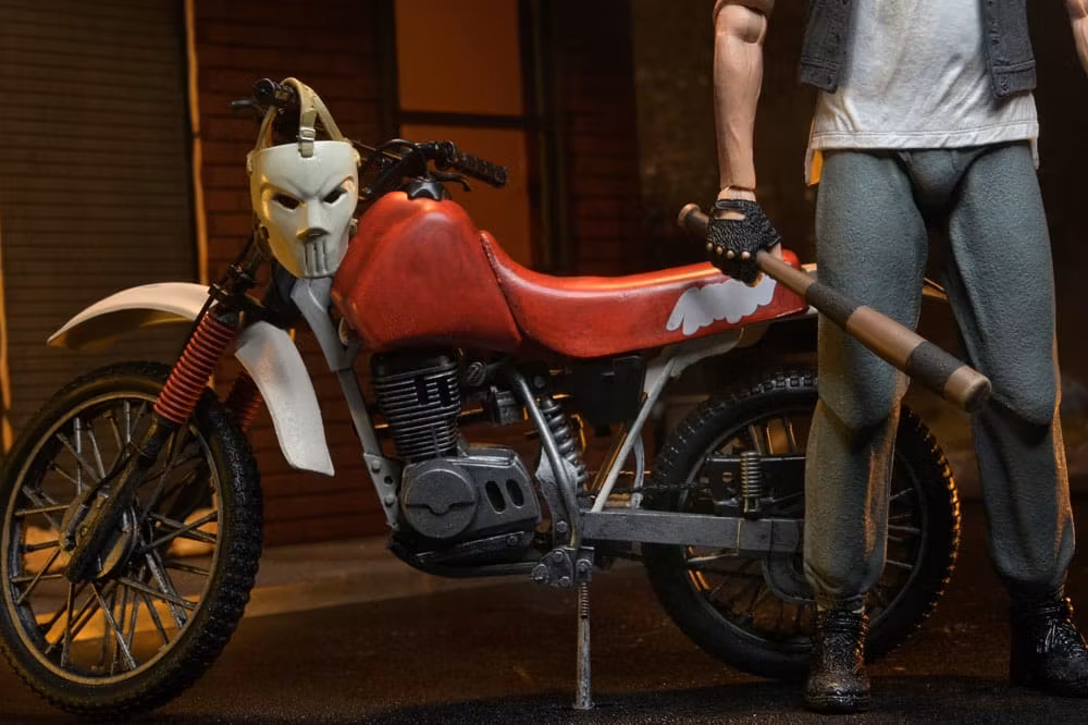 Everyone's favorite sports fanatic vigilante now has his own set of wheels! Straight from the first Teenage Mutant Ninja Turtles movie comes a new Casey Jones action figure from NECA. Standing in 7-inch scale, this figure is ready to ride into your TMNT collection with an arsenal of accessories, including dirt bike, interchangeable hands, battle-damaged mask deco, hockey stick, baseball bats, gloves, and more! Comes in collector-friendly window box packaging.