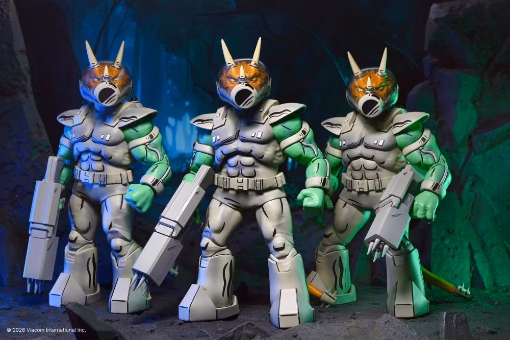Invasion! The Triceraton Republic has arrived. NECA is sending in the Shock Commandos with this deluxe Triceraton action figure, as seen in issue #5 of Eastman & Laird's Teenage Mutant Ninja Turtles comic books from Mirage Studios!