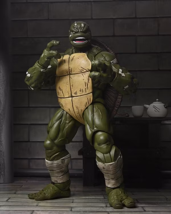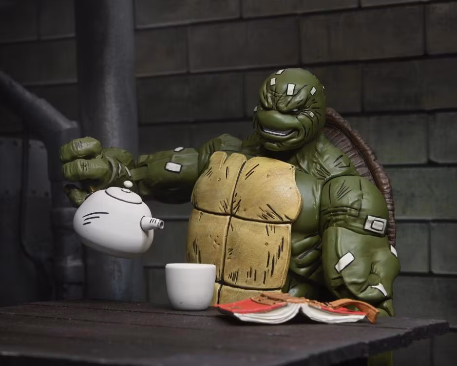 Den här stridsskadade Last Ronin-actionfiguren är i 7-tumsskala och har en helt ny skulptur och flera anpassningsbara visningsalternativ. Den innehåller utbytbara armar, alternativa huvuden, extra händer, helt nya Splinters dagbok, tekanna och kopp. Levereras i en samlarvänlig fönsterlåda med öppningsbar flik med en anpassad illustration av The Last Ronin-konstnären Ben Bishop.