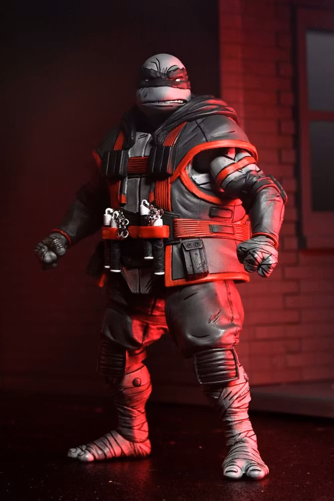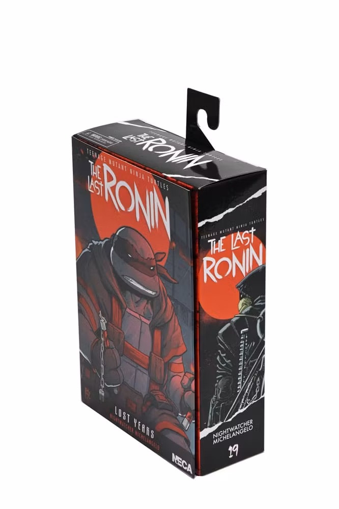 Från Teenage Mutant Ninja Turtles-serien, The Last Ronin - The Lost Years! Berättelsen om den siste Ronins första uppdrag fortsätter när nya hemligheter från sköldpaddornas förflutna avslöjas. Efter att Raphael har fallit omgrupperar sig de kvarvarande sköldpaddorna och bildar Nightwatchers tillsammans med April och Casey. Baserat på nummer #3 står denna Michelangelo-figur i 7-tumsskala och har en stiliserad lack för ett komiskt autentiskt utseende. Tillbehören inkluderar två huvuden, extra händer och nunchaku! Levereras i en samlarvänlig förpackning med originalillustrationer av The Last Ronin-konstnären Ben Bishop.