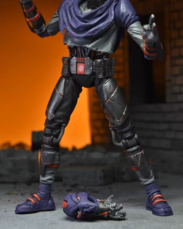 Rippad från sidorna i Teenage Mutant Ninja Turtles: The Last Ronin #3! I ett framtida NYC som är mycket annorlunda än det vi känner idag; en ensam överlevande sköldpadda går på ett till synes hopplöst uppdrag för att få rättvisa åt sin fallna familj och vänner. Imponera på dina vänner med detta mekaniska hot för armébyggande! Den här Ultimate Foot Bot-actionfiguren är äkta för serietidningen och står i 7-tumsskala med över 20 artikulationspunkter. Inkluderar utbytbara huvudskulpturer, utbytbara händer, två cybersvärd, förlängande robo-underarmsfästen och robo-huvudskrot som fäst på Caseys slägga. Pain 101! Kommer i samlarvänlig fönsterkartong med öppningsflik med originalkonstverk av The Last Ronin-konstnären Ben Bishop