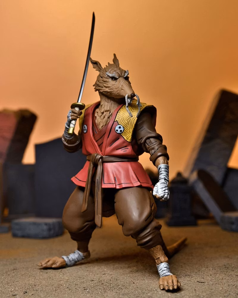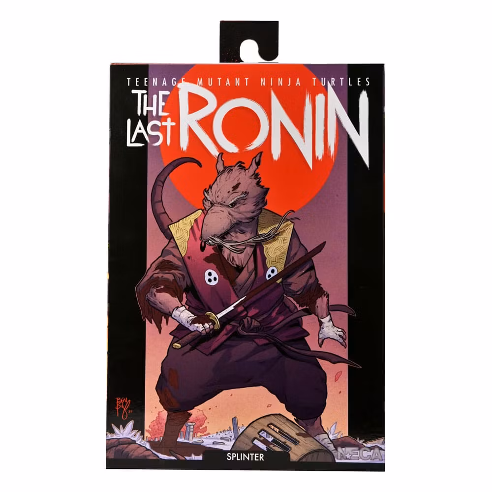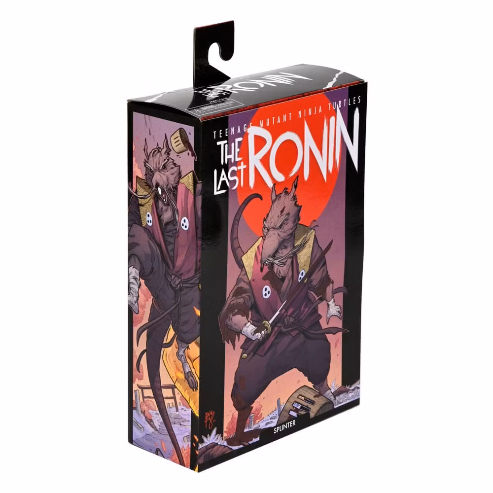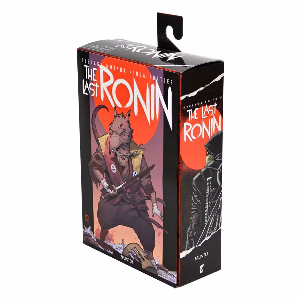 Från Teenage Mutant Ninja Turtles serietidning, The Last Ronin! I ett framtida NYC som är mycket annorlunda än det vi känner idag; en ensam överlevande sköldpadda går på ett till synes hopplöst uppdrag för att få rättvisa åt sin fallna familj och vänner. Baserat på nummer 4 av serien, står figuren Splinter i 7" skala med över 20 artikulationspunkter, och inkluderar stav, katana och slida, utbytbara händer och utbytbara underarmar så att Splinter kan visas med rena eller trasiga ärmar. Kommer i samlarvänlig fönsterkartong med öppningsflik med en anpassad illustration av The Last Ronin-konstnären Ben Bishop.
