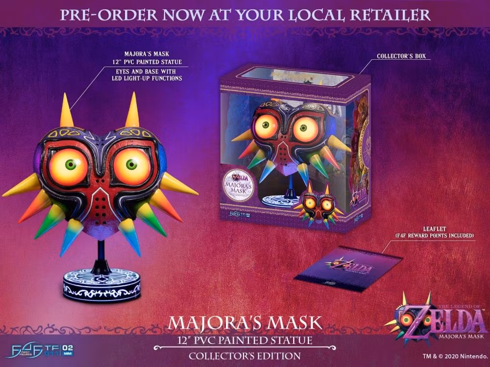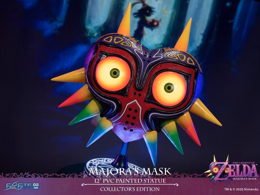 This statue of Majora's mask features the same textured details and vibrant colors the mask is known for. The Collector's Edition also has two LED modes for the eyes: static and pulsing. What sets this PVC apart, however, is the ability to switch between these two modes through motion sensor! Order yours today!