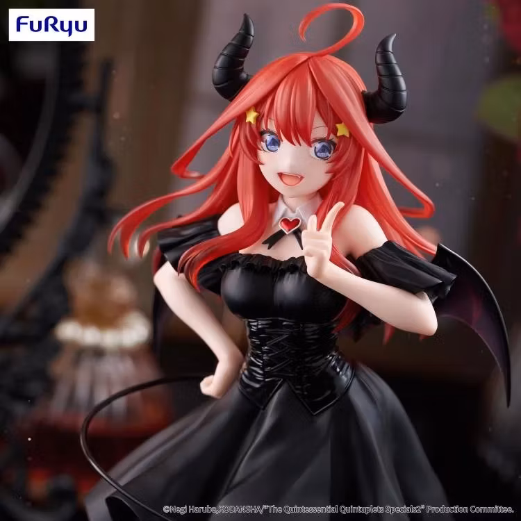From the popular anime series, The Quintessential Quintuplets, comes the BiCute Dark Itsuki Nakano figure by FuRyu! This figure stands just under 10 inches tall and displays Itsuki Nakano in a black dress with various devilish aspects as she stands in a popular pose with a smile on her face. Don't miss your chance to add this figure to your collection!