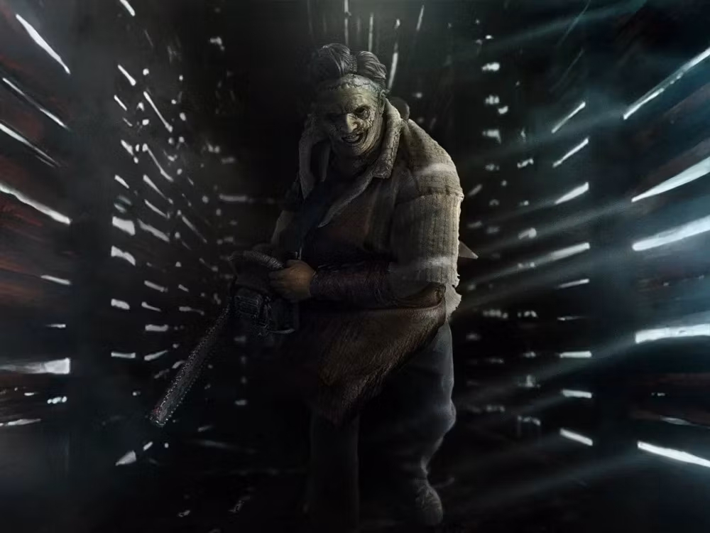 The Hewitt family’s tormented serial killer is dressed in his signature butcher’s attire—filthy apron, stained shirt, and work boots—each detail recreated with exquisitely eerie realism.