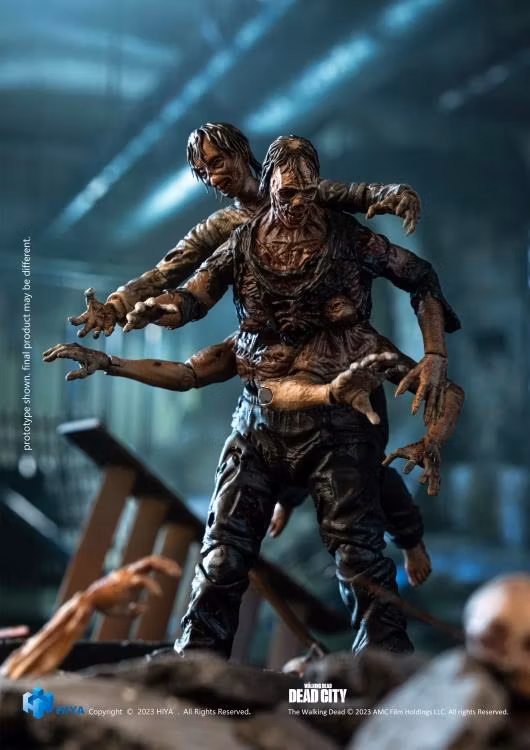 Hiya Toys introduces the new EXQUISITE MINI Series Walker King, a 1/18 scale action figure from The Walking Dead: Dead City! In the June 2023 sequel series, The Walking Dead: Dead City, Maggie and Negan confront a formidable foe-the Walker King, a grotesque amalgamation of multiple walkers, slime, decayed fat, and other putrid substances. This brand new Walker King action figure stands 4.2 tall, faithfully depicting its bloody and terrifying appearance with extensive weathering and damage on the upper body. Every detail, including scars, bloodstains, and signs of decay, is perfectly reproduced at a 1/18 scale. With 38 points of articulation, the figure allows for various dynamic poses, showcasing its formidable malevolence. Additionally, the figure includes a randomly selected exclusive stand from four different appearances, replicating scenes of scattered bodies and muddy grounds, providing an immersive experience of the most thrilling bloodbath!
