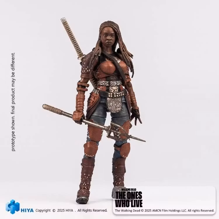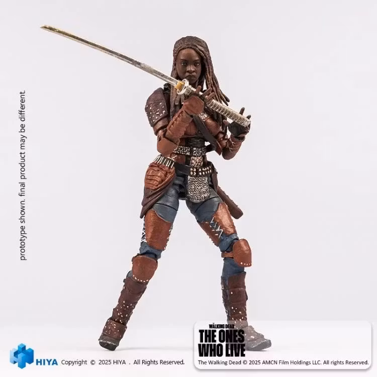 Equipped with her signature katana, combat stick, walkie-talkie, and more, each accessory is finely crafted in 1/18 scale. The figure features multiple points of articulation and includes two interchangeable hand parts, enabling fans to pose Michonne in dynamic, combat-ready stances.