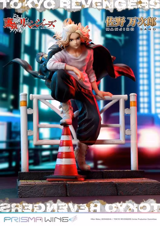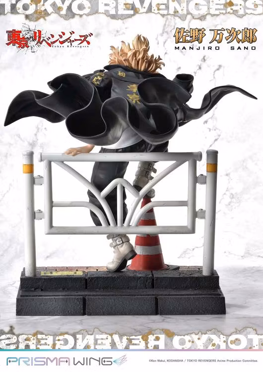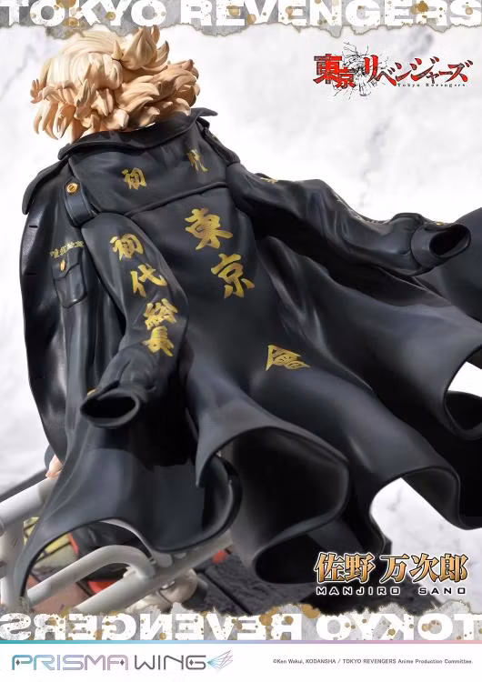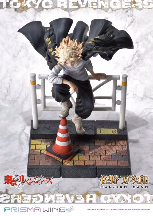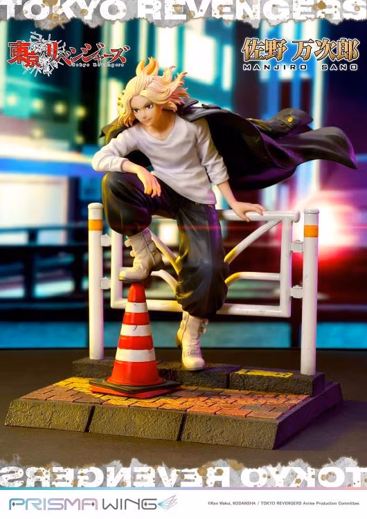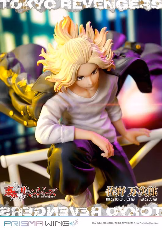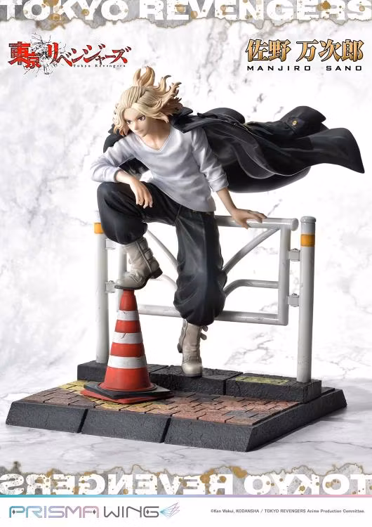 PRISMA WING är stolta över att presentera det senaste tillskottet till deras figurlinje, det är den tidigare ledaren för Tokyo Manji Gang, Manjiro Sano AKA Mikey! Han kommer från den populära serien Tokyo Revengers, en intensiv och hjärtskärande spänningshistoria. Med kraften att slå ner sina motståndare med en enda spark, och en karisma som till och med överträder respekt, visar denna statyett perfekt charmen hos denna mycket populära gängledare. Den självsäkra blicken i hans ansikte är den perfekta representationen av Mikey. Inte bara är formningen och formningen synlig, utan det känns också som om vi kan se olika känslor skildras genom hans ansiktsuttryck. Till och med hans signaturfrisyr har utformats noggrant, där varje bunt är exakt gjuten för att få hans hår att se ut som om det flyter i vinden. Guldbokstäverna på hans långa svarta jacka är noggrant skulpterade. Konstnärerna på PRISMA WING har strävat efter att återskapa varje detalj som hans fickor, rynkorna i hans kläder och till och med bältesremmarna på hans skor. Kolla in antydningarna av hans flexibla kropp som kan ses genom den vita skjortan. Trots hans ringa kroppsbyggnad kan du känna hans styrka som beundras av andra. Den specialiserade basen skildrar Shibuyas gator, med ledaren för Tokyo Manji-gänget sittande på ett skyddsräcke. Tillsammans med den överfulla gatuliknande omgivningen presenterar PRISMA WING denna omsorgsfullt konstruerade figur av "Invincible Mikey".