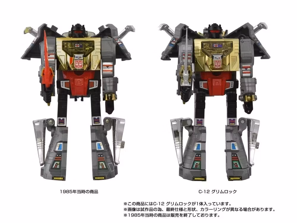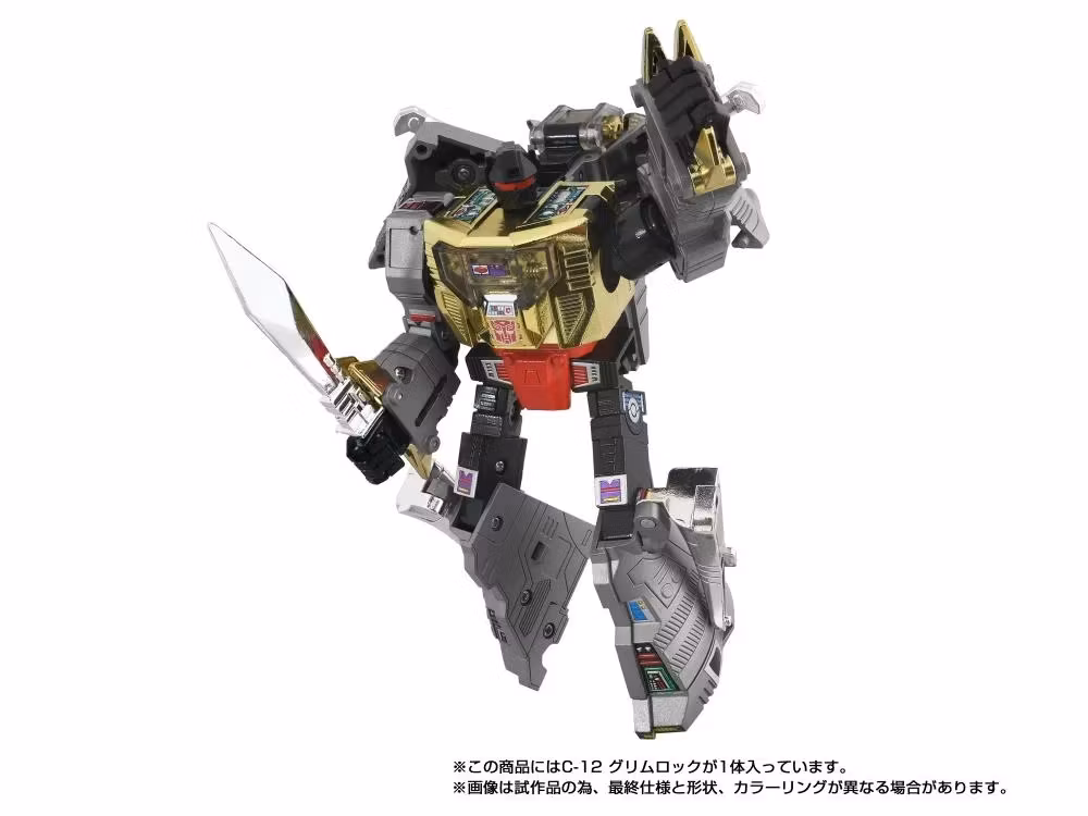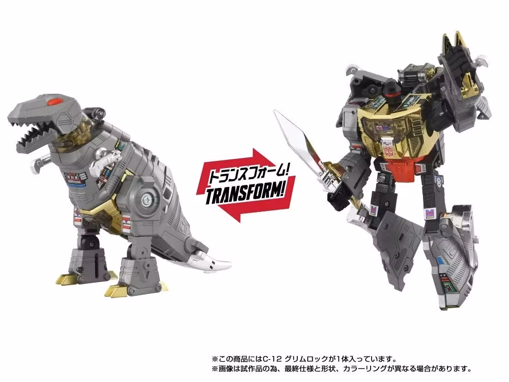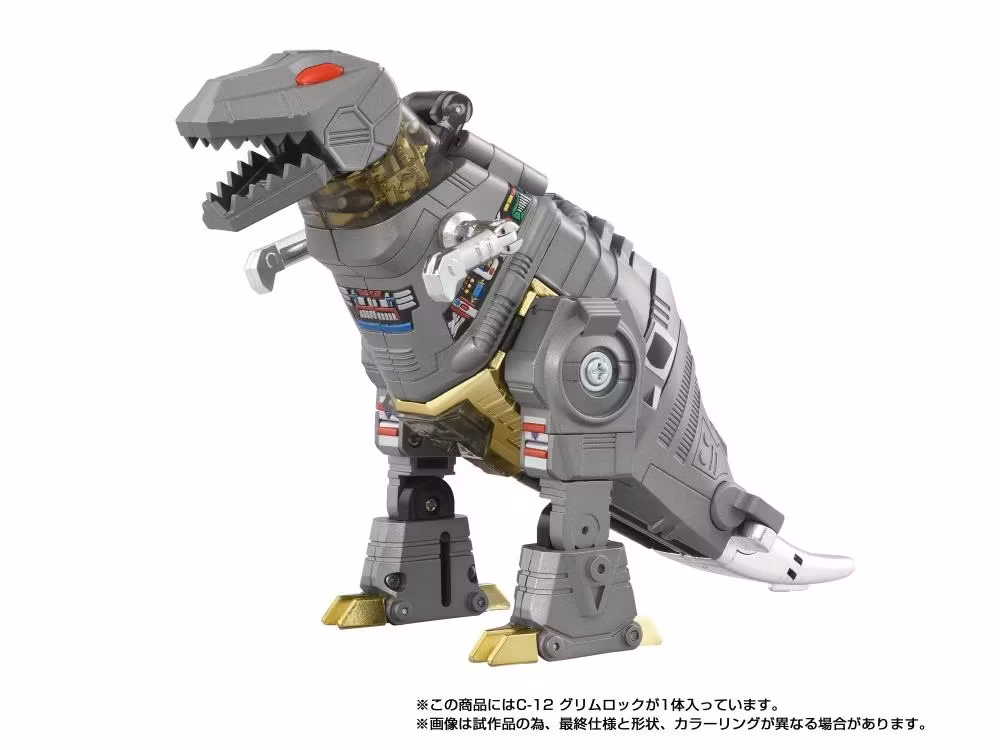 Complete your collection with the Takara Tomy Transformers Missing Link C-12 Grimlock action figure! This collectible action figure for adults converts from robot to dinosaur mode. Product features authentic Takara Tomy design and deco, including a hidden heat-activated mark. With premium accessories and original Japanese-language packaging and instructions, this Transformers toy is a must-have for fans of Transformers collectibles.