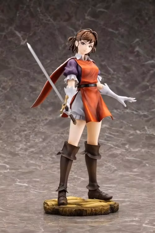 Figuren har troget återskapats med noggrann uppmärksamhet på detaljer och fångar hennes eleganta aura. Varje element har skulpterats minutiöst, från den flödande formen på hennes distinkta outfit till hårets struktur och hennes självsäkra uttryck.