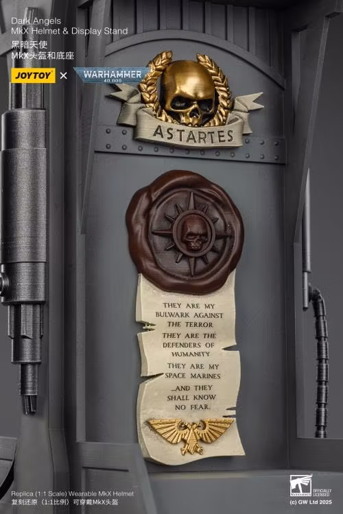Efter att ha svurit trohet till Dark Angels-kapitlet av Space Marines är JoyToy överlycklig över att presentera för den nyaste rekryten en fantastisk hjälmreplika av Dark Angels Mk. X-rustningen! Designad med häpnadsväckande detaljer är denna fantastiska replika en 1/1-skala och perfekt för att framhäva din Warhammer-samling med stil! Beställ din idag och gå med ditt kapitel i försvaret av Imperiets Imperium!