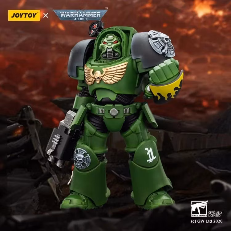 Joy Toy brings the Salamanders to life with this Warhammer 1/18 scale action figure! Hailing from a volcanic and unstable world, the Salamanders Space Marine Chapter are regarded and hailed by the citizens of the Imperium for being true champions of the common man. Taking great care to defend civilians during their endless battles with the forces of Chaos, these Dragon Warriors are strong adherents to the Promethean Cult of Emperor worship. Do not assume, however, that their care for mortals masks for an inherent weakness; rather, it emboldens them to unleash fury and destruction that is as vicious and dangerous as the dragons who inhabit their homeworld.