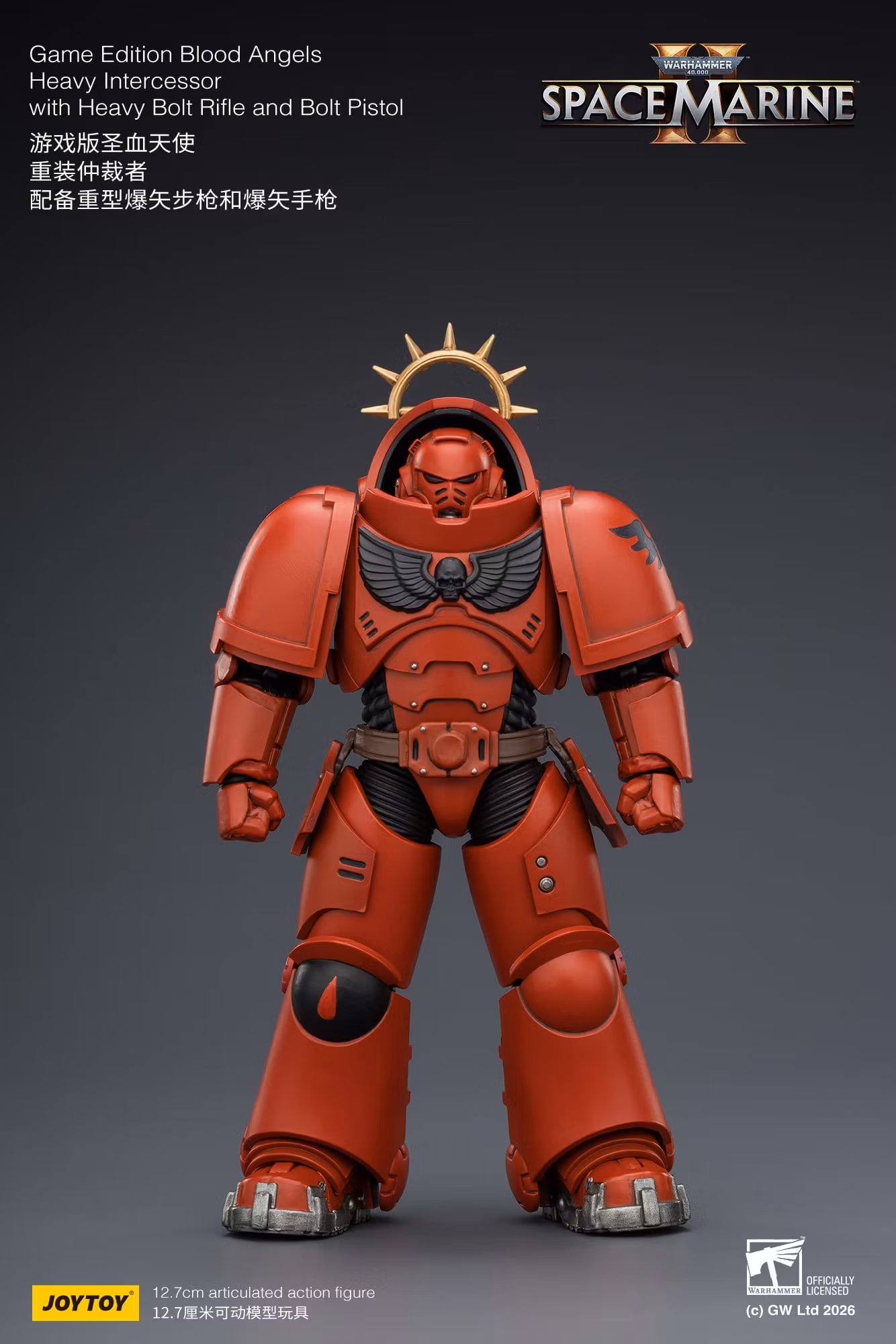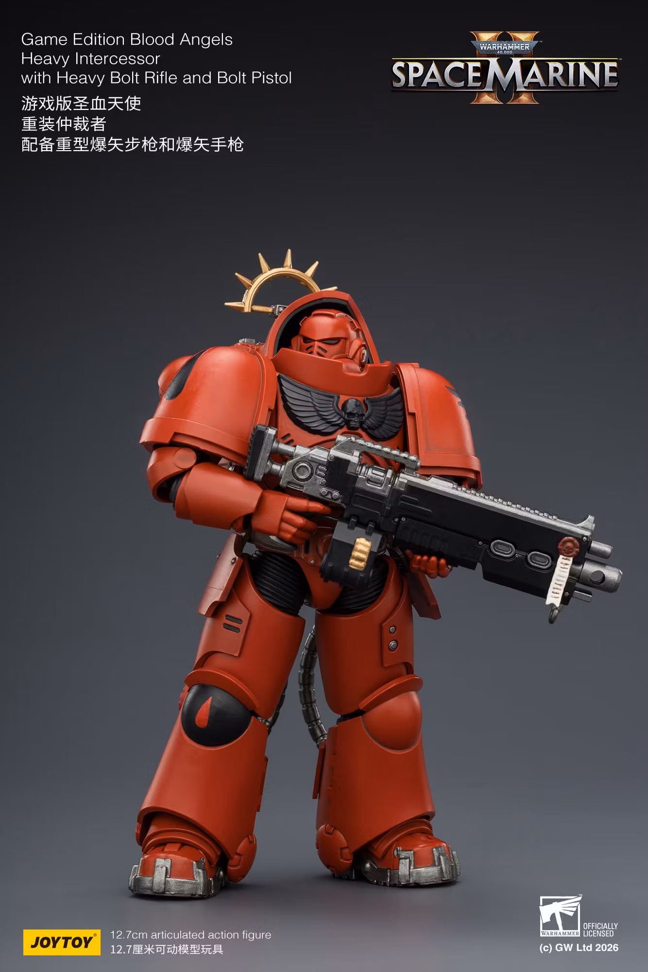 Warhammer 40,000: Space Marine 2 Blood Angels Heavy Intercessor with Heavy Bolt Rifle and Bolt Pistol (Game Edition) 1/18 Scale Action Figure