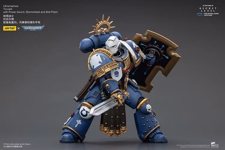 Warhammer 40,000 Ultramarines Torvald with Power Sword, Stormshield and Bolt Pistol 1/18 Scale Action Figure