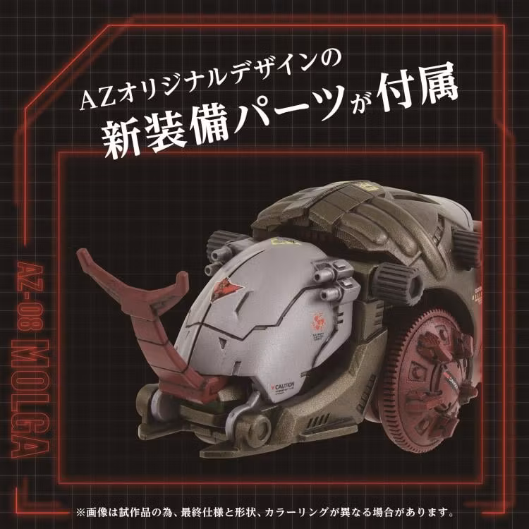 Det ultimata varumärket som förkroppsligar toppen av flyttpaket! Zoid av insektstyp, med tidlös popularitet, gör en storslagen comeback med motorkraft! Replikerar den unika slingrande rörelsen hos insektslarver och rör sig därefter. Stjärtskyddet öppnas och stängs, och det inbyggda vapnet är rörligt. Medföljer en soldatfigur som kan gå ombord i sittbrunnen. Dessutom ingår nya utrustningsdelar med AZ-originaldesign.