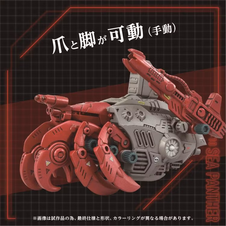Denna modellsats klor och ben manövreras (manuellt) och låter dig reproducera olika varianter genom att byta ut delar. Använd det medföljande rundstrålande ultraljudsekolodet och sensorantennen med hög precision för att hålla din bas säker! Den motordrivna realistiska gången har också ett torn som rör sig upp och ner i samband med gång. Beväpnade vapen i varje del kan användas och avfyrningsformen kan reproduceras.