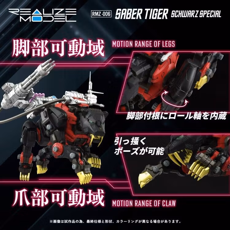The feline-type Zoid Saber Tiger (Schwarz Special Ver.) from Zoids is the latest member of Takara Tomy's 1/100-scale Realize Model Zoids model-kit lineup!