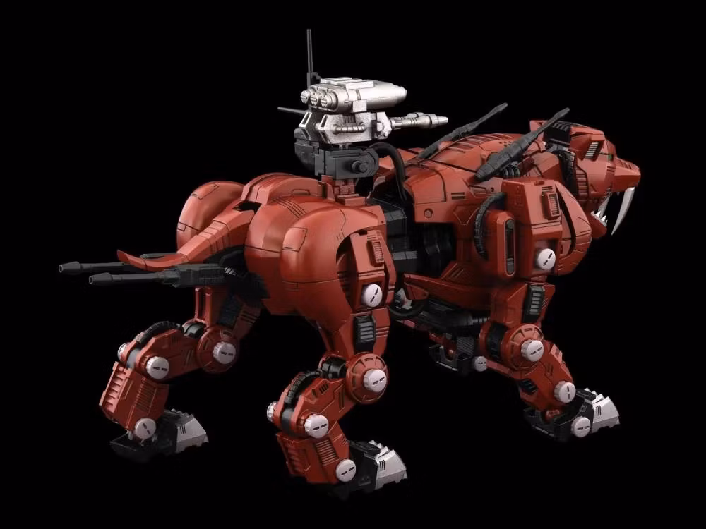 The model kit is specially designed with articulation that allows full-body movement, enabling various action poses unique to the Tiger-type Zoids, such as firing cannons or charging. The weapons mounted throughout the body are movable, allowing the recreation of various battle scenes.