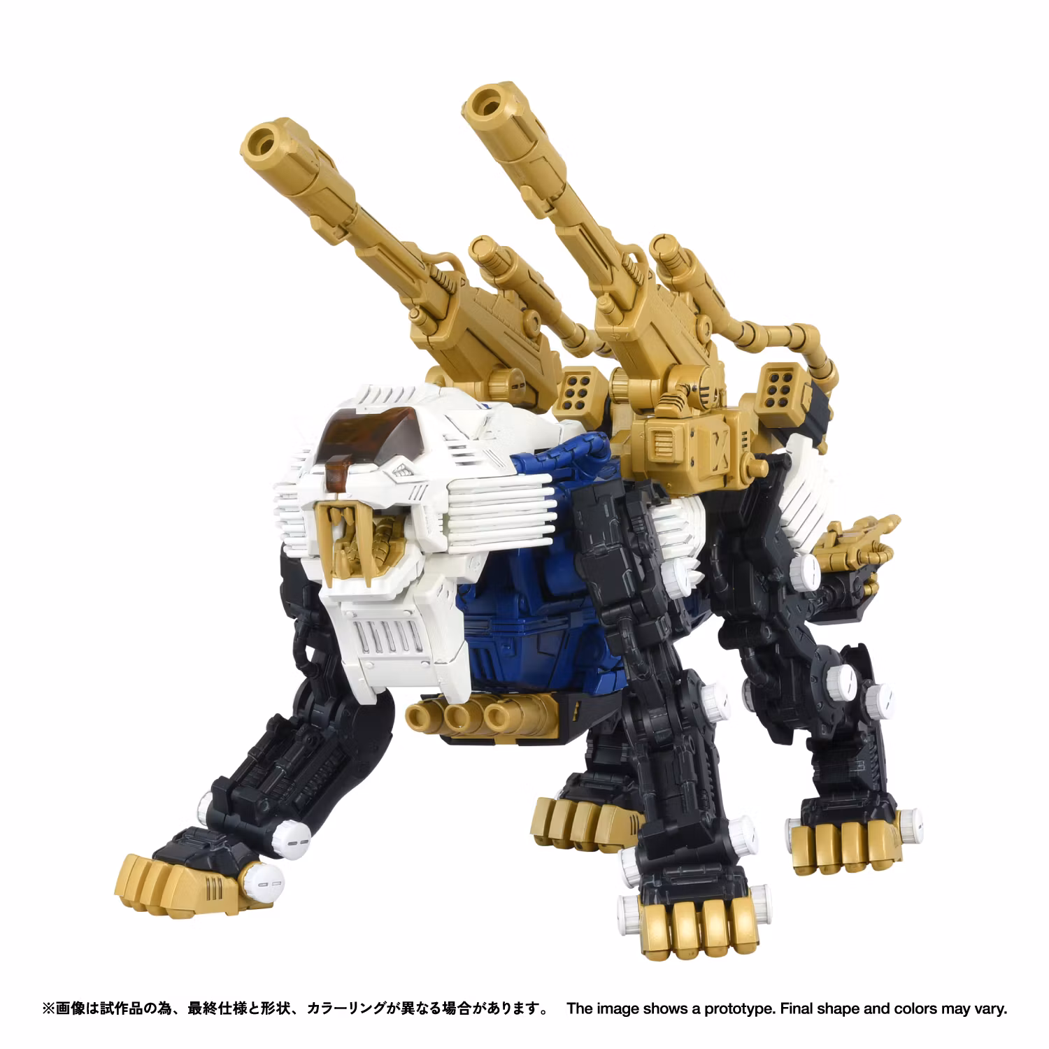 Tack vare en specialdesignad ledmekanism är hela kroppen rörlig, vilket gör att den kan inta olika rörelsepositioner unika för lejontyp Zoids. Den nyss skulpterade Beam Cannon kan höjas och roteras vid anslutningspunkten till energitanken. Kablarna är gjorda av plast och de fyra delarna är sammanfogade via kulled, vilket möjliggör mjuk och flexibel rörelse. Inkluderar en pilotfigur (vanlig soldat). Figuren kan sitta i cockpit.