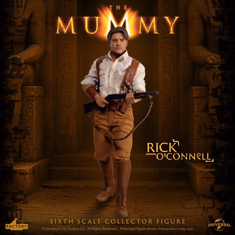 This figure presents a detailed likeness of Rick O’Connell, the daring soldier turned treasure hunter famously played by Brendan Fraser. O’Connell’s costume, from his military shirt to his khaki pants, has been perfectly recreated, along with his iconic double shoulder holster rig.